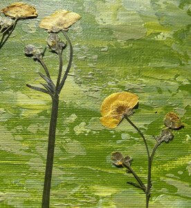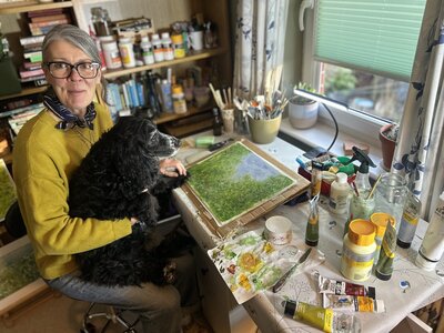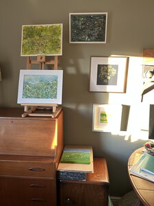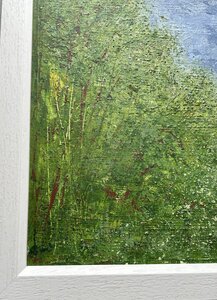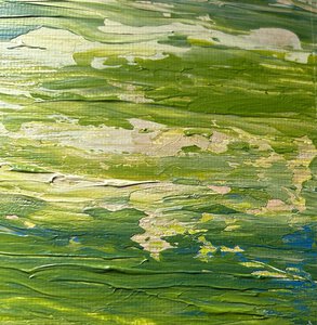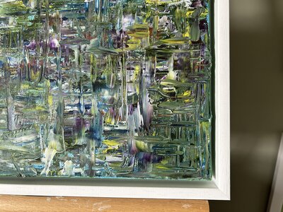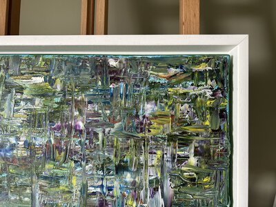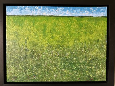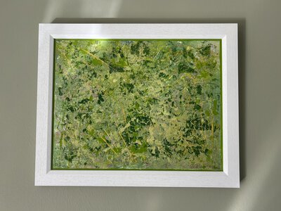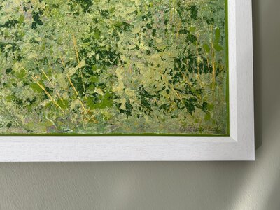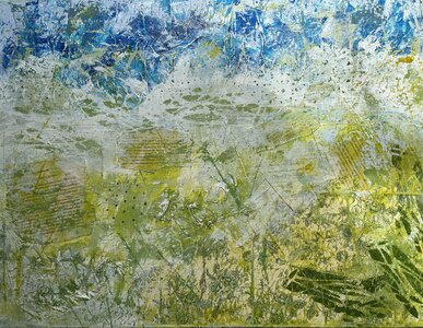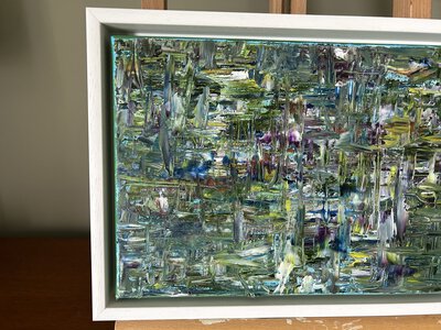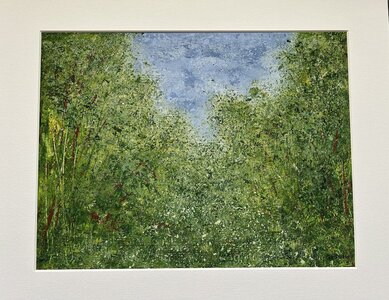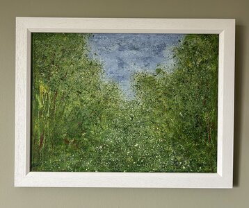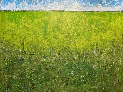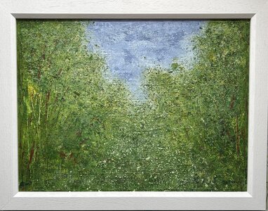 I spend much of my life outdoors, both through my garden design work and in my free time, and nature is at the heart of my painting. Designing planting schemes feels very similar to creating a painting: building layers, textures and movement to create depth, balance and interest. Walks in nature with my dog, Esme, whether along the coast, through woodland or across open fields, are a constant source of inspiration. I am endlessly drawn to the changing seasons and the shifting colours and textures of the landscape throughout the year. Working mainly with acrylic paint, I enjoy experimenting with mark-making tools such as brushes, sponges, spatulas and even my hands, often incorporating mixed media and found materials like tin foil, old credit cards or everyday objects to create unique textures and layers. Through my work I hope to capture a sense of the calm, restorative power of the natural world. I invite viewers to pause, look closely and perhaps discover their own meaning within the painting, and above all to experience a moment of quiet pleasure and peace.