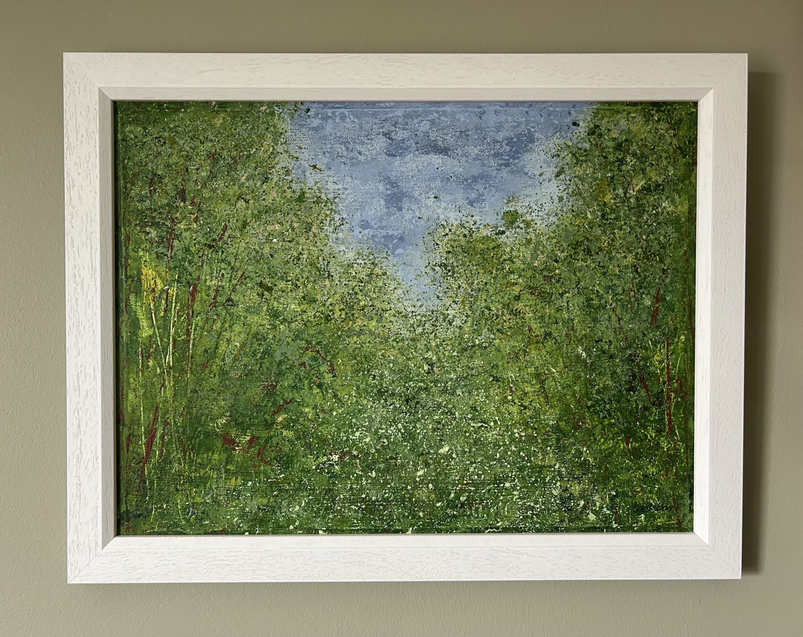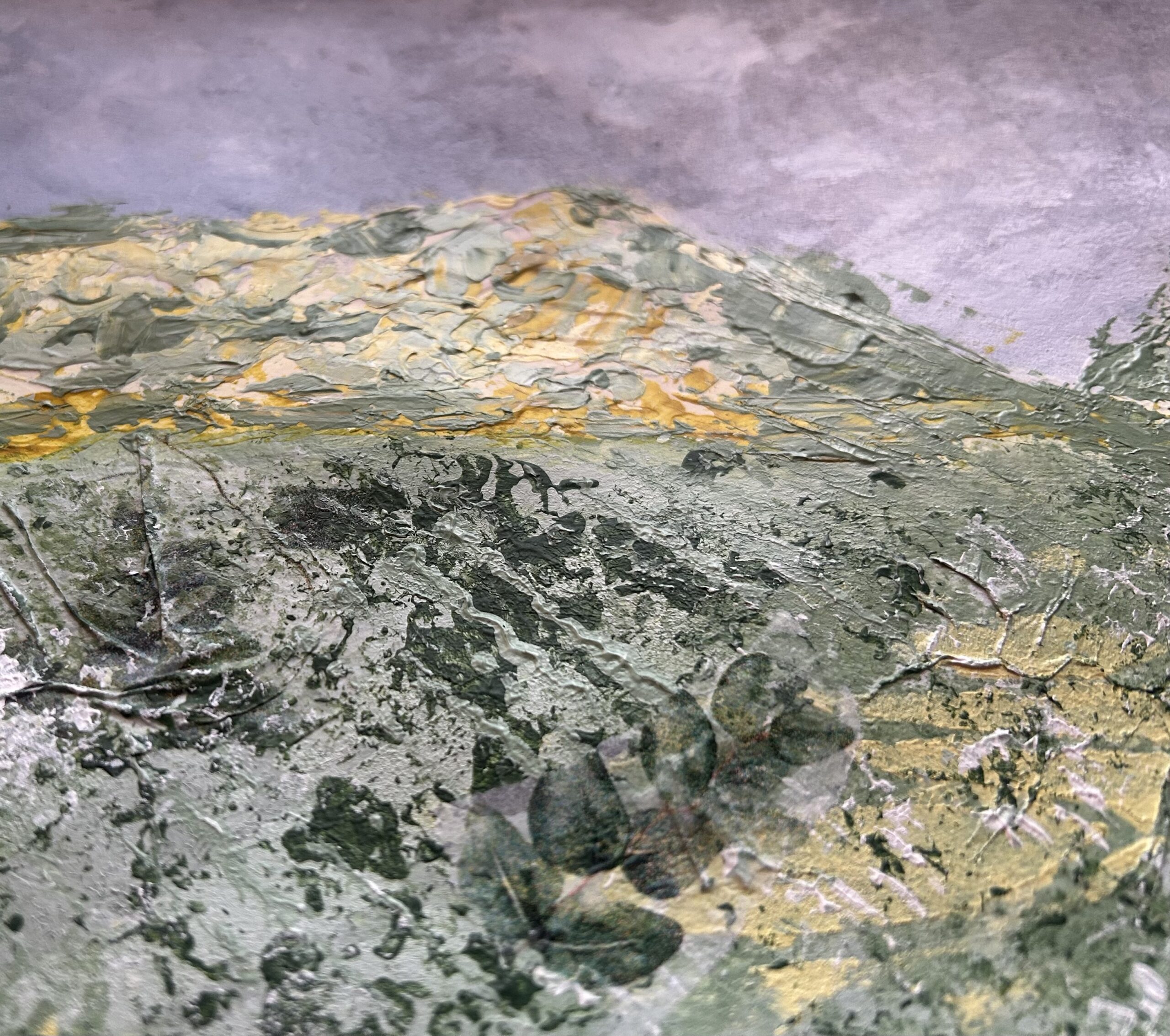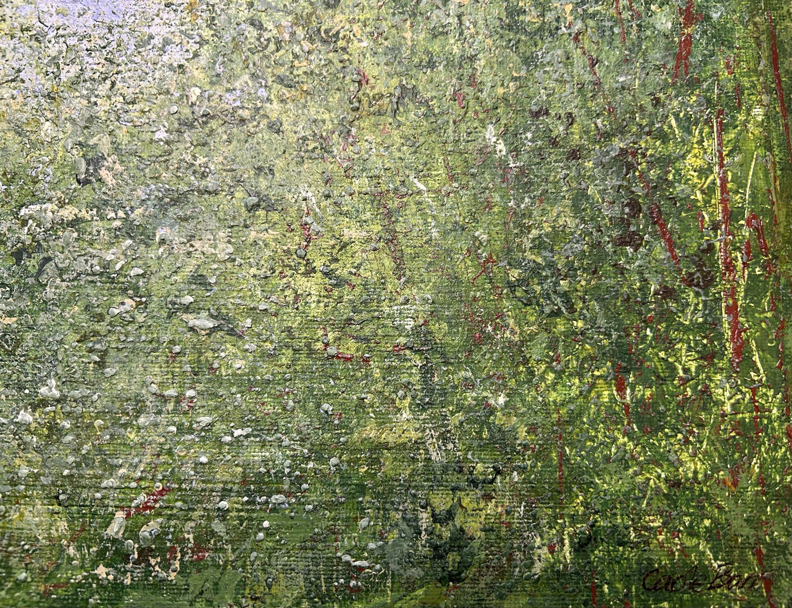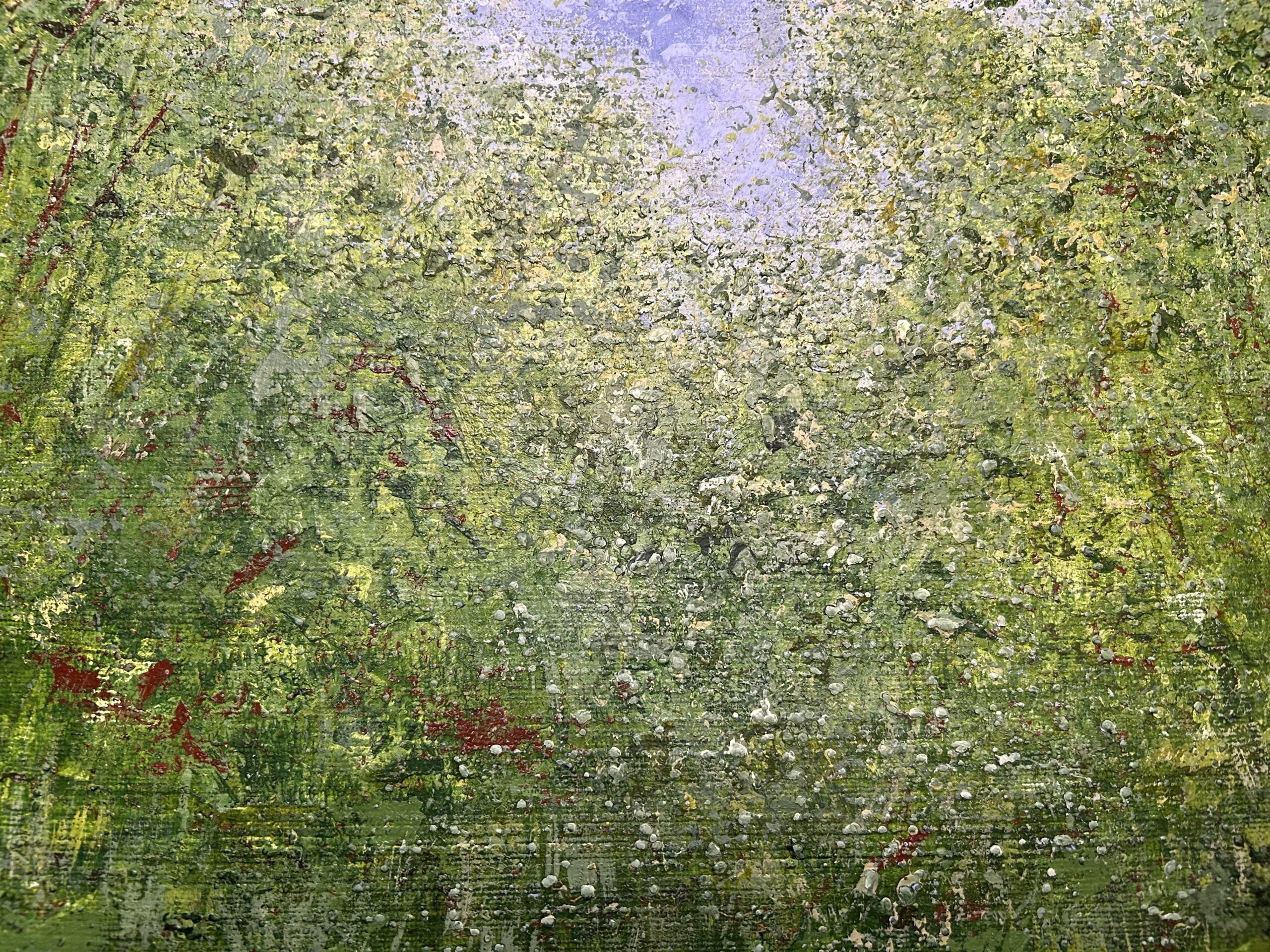 I spend much of my life outdoors, both through my garden design work and in my free time, and nature is at the heart of my painting. Designing planting schemes feels very similar to creating a painting: building layers, textures and movement to create depth, balance and interest. Walks in nature with my dog, Esme, whether along the coast, through woodland or across open fields, are a constant source of inspiration. I am endlessly drawn to the changing seasons and the shifting colours and textures of the landscape throughout the year. Working mainly with acrylic paint, I enjoy experimenting with mark-making tools such as brushes, sponges, spatulas and even my hands, often incorporating mixed media and found materials like tin foil, old credit cards or everyday objects to create unique textures and layers. Through my work I hope to capture a sense of the calm, restorative power of the natural world. I invite viewers to pause, look closely and perhaps discover their own meaning within the painting, and above all to experience a moment of quiet pleasure and peace.