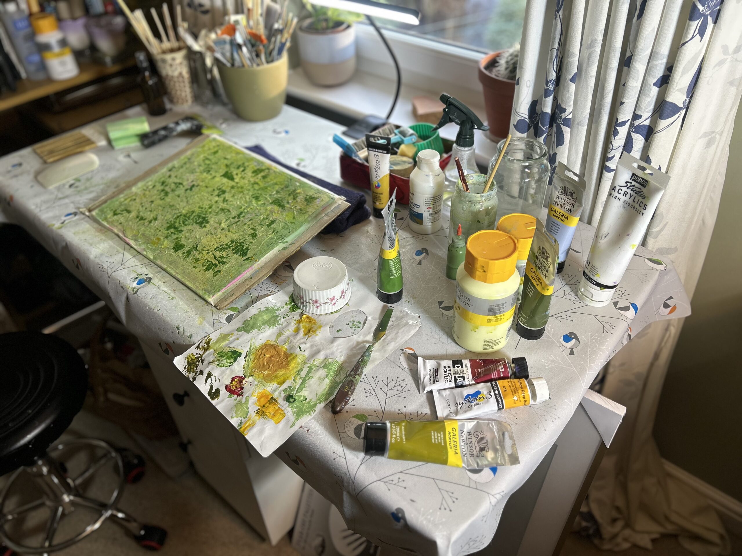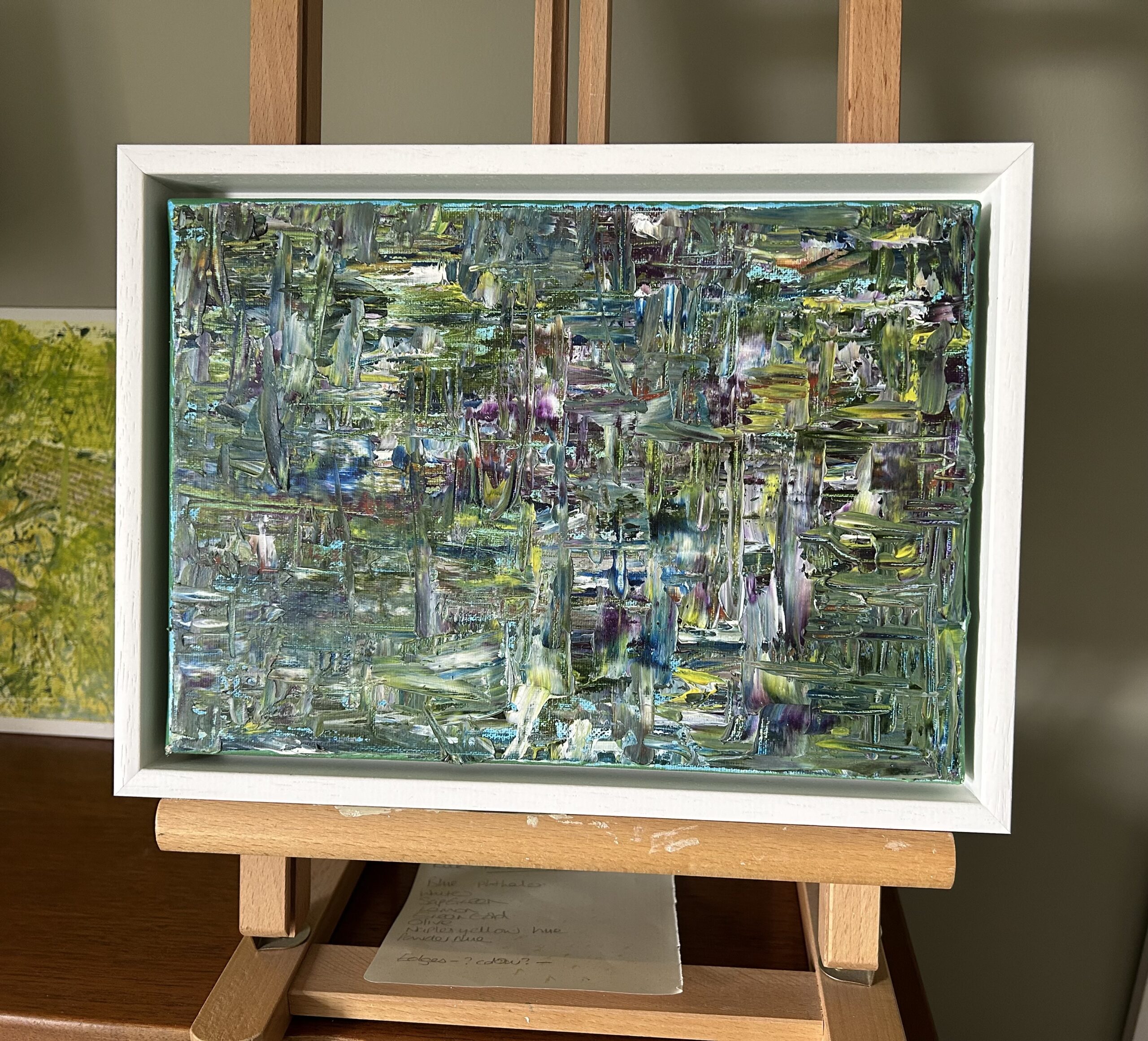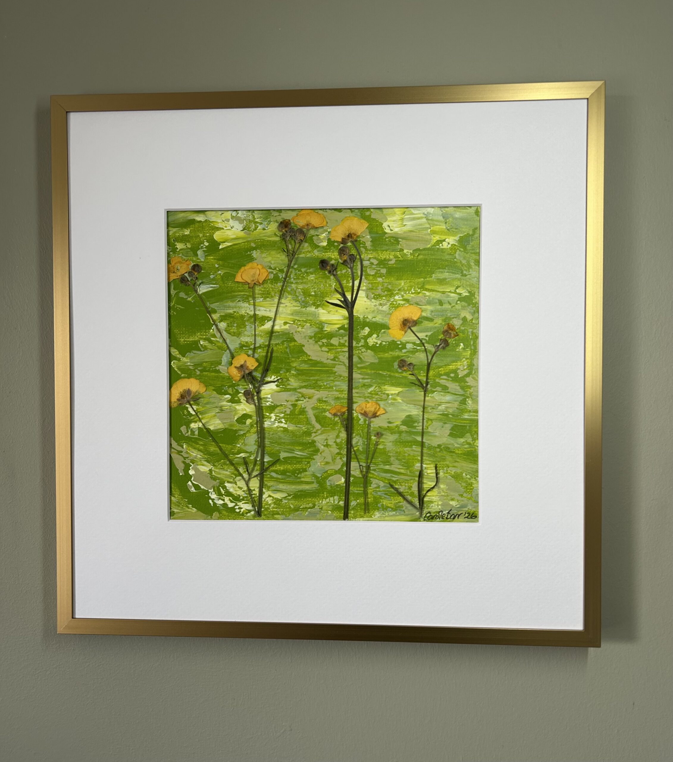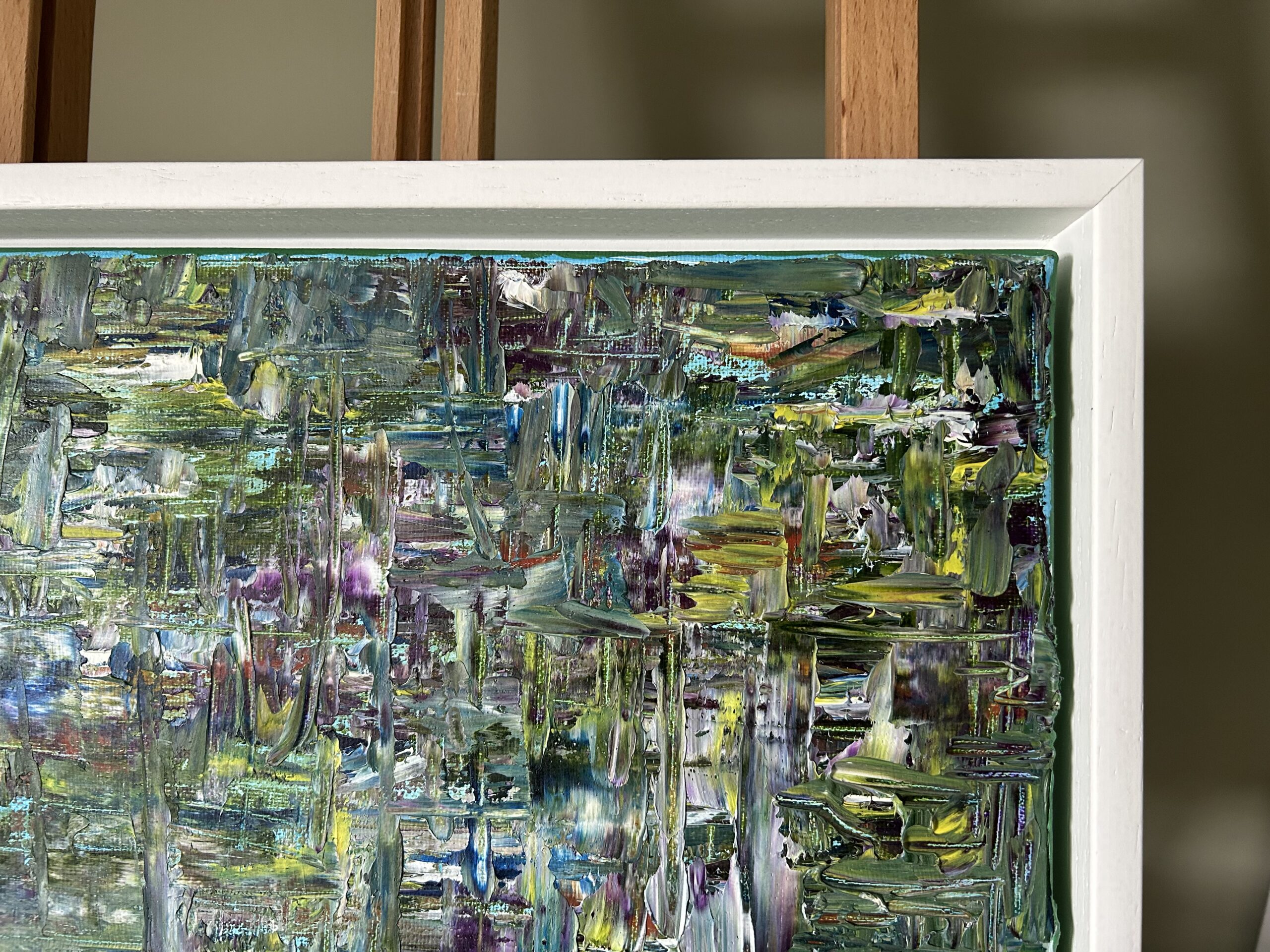 I spend much of my life outdoors, both through my garden design work and in my free time, and nature is at the heart of my painting. Designing planting schemes feels very similar to creating a painting: building layers, textures and movement to create depth, balance and interest. Walks in nature with my dog, Esme, whether along the coast, through woodland or across open fields, are a constant source of inspiration. I am endlessly drawn to the changing seasons and the shifting colours and textures of the landscape throughout the year. Working mainly with acrylic paint, I enjoy experimenting with mark-making tools such as brushes, sponges, spatulas and even my hands, often incorporating mixed media and found materials like tin foil, old credit cards or everyday objects to create unique textures and layers. Through my work I hope to capture a sense of the calm, restorative power of the natural world. I invite viewers to pause, look closely and perhaps discover their own meaning within the painting, and above all to experience a moment of quiet pleasure and peace.